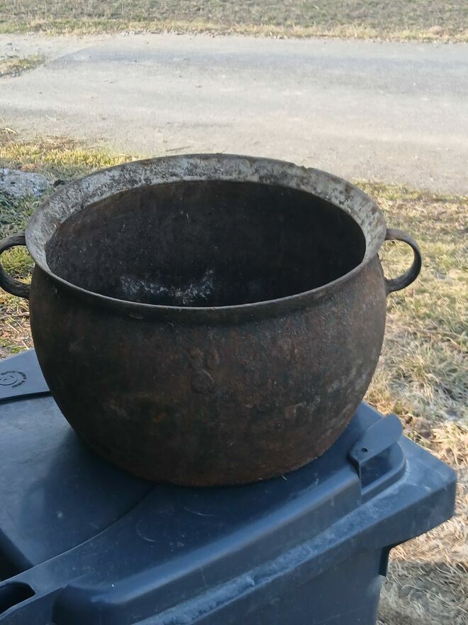 Stary żeliwny kociolek 30 litrów